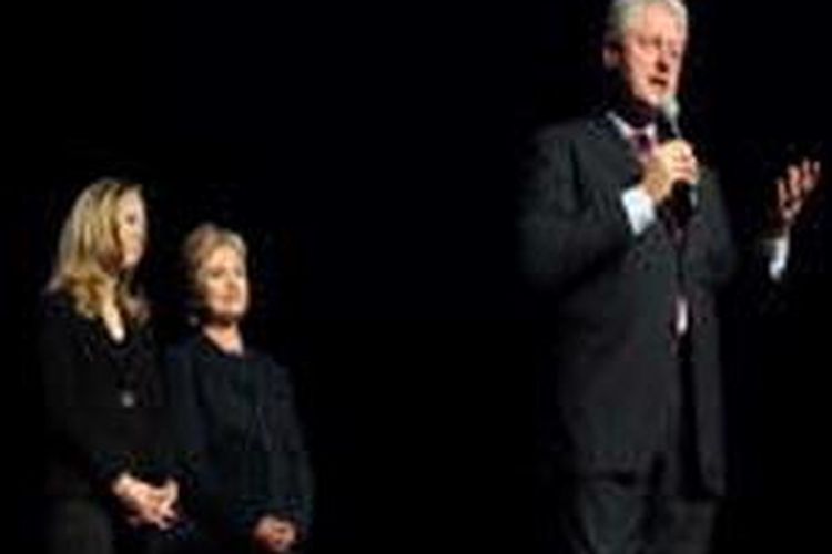 Bill Clinton bersama Chelsea (kiri) dan Hillary (kanan)