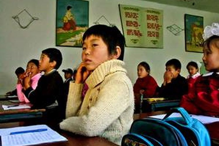 Murid-murid Kirghiz dalam kelas Bahasa Inggris