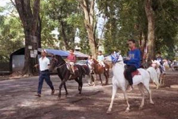 Ketika berlibur ke Bandung, orang-orang yang datang dari luar kota maupun dalam kota mencoba menikmati jasa kuda untuk keliling jalan seputar kampus Institut Teknologi Bandung (ITB). Namun, kata pemilik kuda, orang dari luar kota Bandung biasanya tak puas bila hanya keliling tiga atau empat kali putaran.(KOMPAS/YULIA SEPTHIANI)
