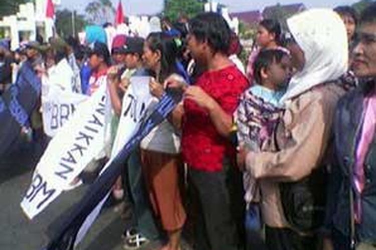 Para ibu rumah tangga menolak kenaikan harga BBM.(KOMPAS/CHRISTOPORUS WAHYU HARYO)