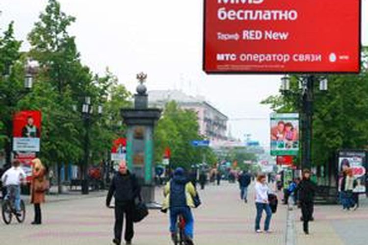 Pedesterian di tengah kota Chelyabinsk sekaligus menjadi tempat berbelanja warga kota dan para turis.