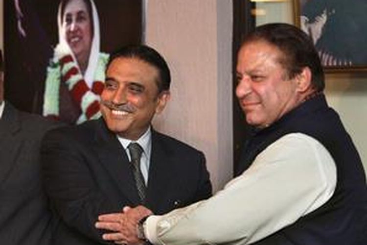 Asif Ali Zardari (kiri) bersama Nawaz Sharif saat pertama kali bersepakat membentuk koalisi untuk menggempur Pervez Musharraf.