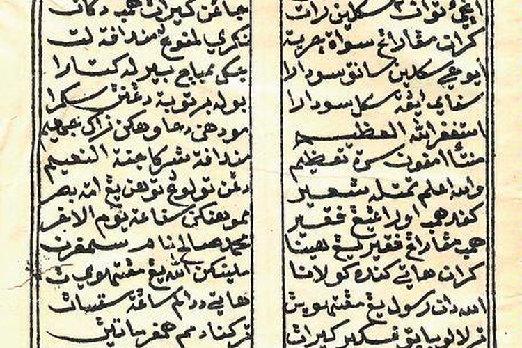 Halaman penutup Syair Lampung Karam, yang ditulis Muhammad Saleh, tentang kesaksian meletusnya Gunung Krakatau pada tahun 1883. Letusan gunung tersebut menimbulkan tsunami dan gelombang laut setinggi 40 meter, serta mengakibatkan setidaknya 36.000 orang tewas. (Repro Suryadi)