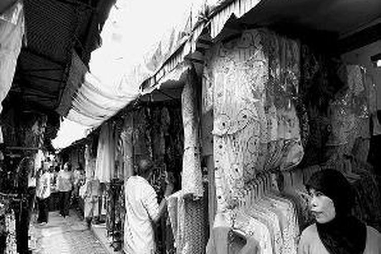 Pedagang di Pasar Koja Baru, Jakarta Utara, menunggu datangnya pembeli, Minggu (14/9). Rencananya PD Pasar Jaya akan merenovasi pasar tersebut dan memindahkan pedagang sementara ke tempat penampungan.