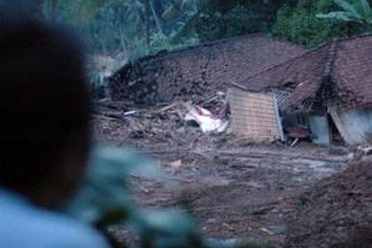 Longsor di Cianjur yang terjadi Kamis (13/11) malam menyebabkan 14 orang hilang. Lima berhasil ditemukan dalam keadaan tewas dan sembilan lainnya masih tertimbun.(TRIBUN JABAR/DENI DENASWARA)