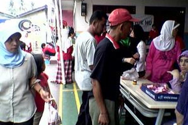 Antrean pengambilan daging kurban di Lembaga Pendidikan Pribadi Depok, Senin (8/12). Sekitar 5.000 kupon sudah disebar kepada warga yang tergolong miskin.