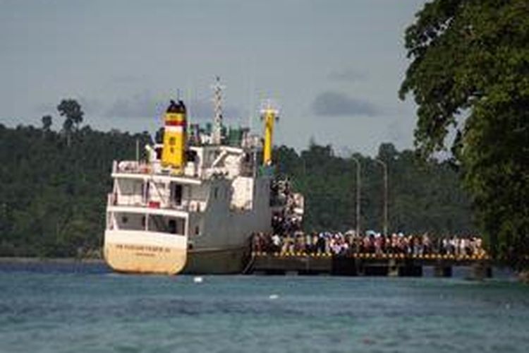 Kapal penumpang dikerahkan untuk mengantar tamu undangan kunjungan kerja Presiden yang meresmikan 10 proyek di Pulau Mancinam, Manokwari, Papua Barat, Kamis (22/1)