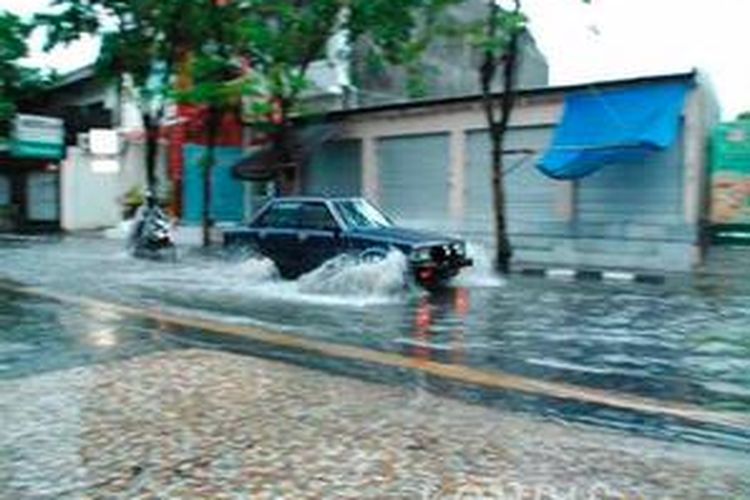 Jalan Legian Kuta Bali yang terendam banjir pagi.