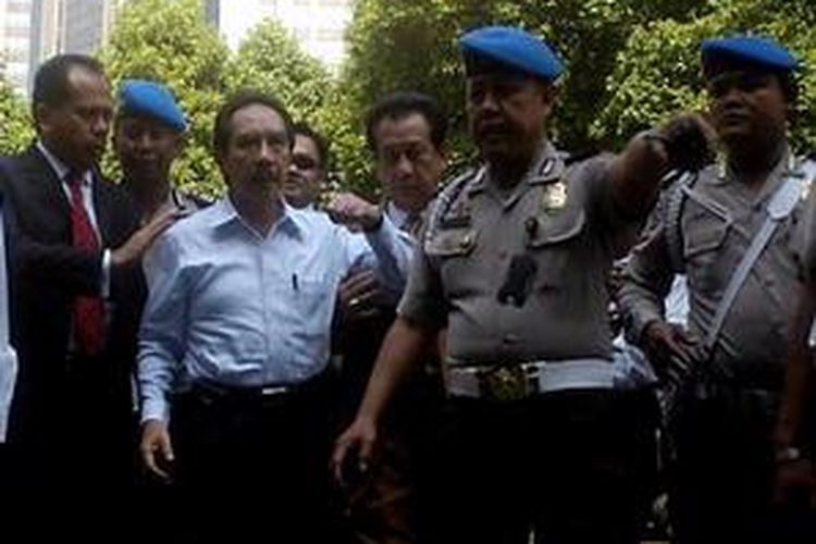 Ketua KPK non-aktif, Antasari Azhar bersama tim pengacaranya memenuhi panggilan Polda Metro Jaya, Jakarta, Senin (4/5). Antasari diperiksa sebagai saksi dalam kasus pembunuhan Direktur PT Putra Rajawali Banjaran Nasruddin Zulkarnaen. (DHONI SETIAWAN)