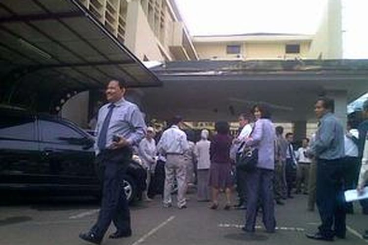 Akibat gempa, para pegawai Mabes berkumpul di teras Bareskrim Jakarta.