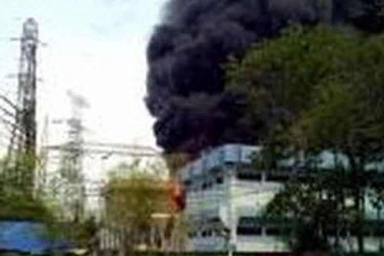 Kebakaran yang terjadi di gardu induk PLN Cawang, Jakarta Timur, Selasa (29/9).(TMC Polda Metro Jaya)
