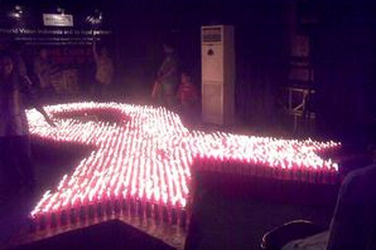 Seribu lilin dinyalahkan dalam acara peringatan Hari AIDS sedunia di Pacific Place Jakarta, Selasa (30/11) sebagai simbol kepedulian terhadap para penderita HIV/AIDS.