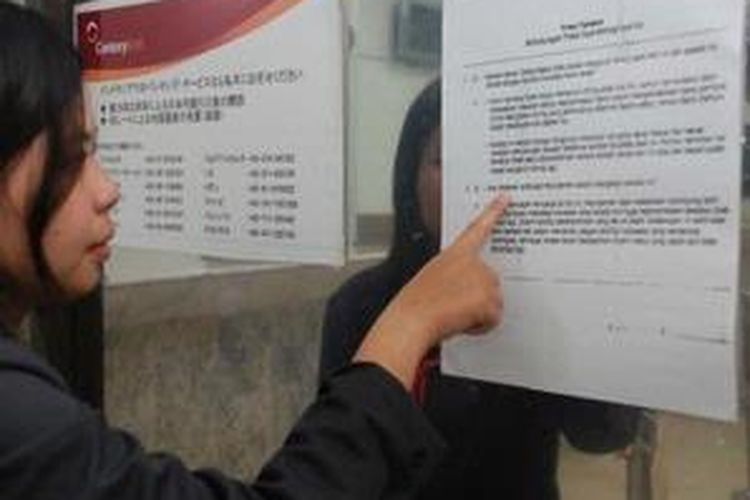 Seorang nasabah Bakn Century memperhatikan pengumuman sehubungan tidak ikut kliring.