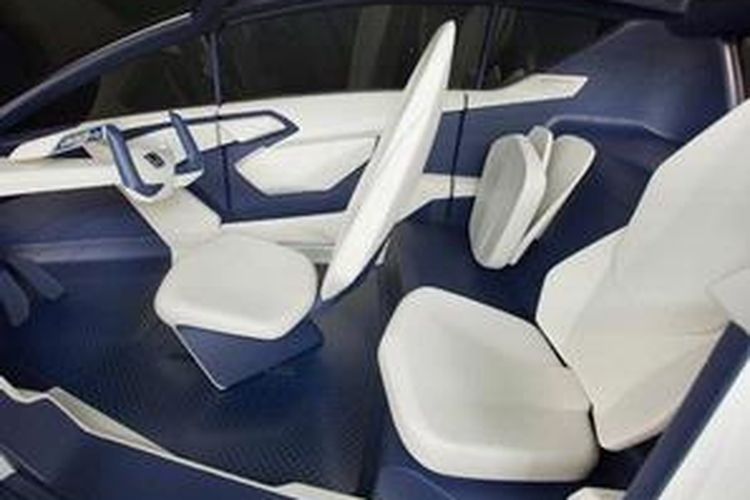 Interior Honda P-NUT. Pengemudi di tengah. kedua penumpang belakang leluasa menjulurkan kakinya ke depan.
