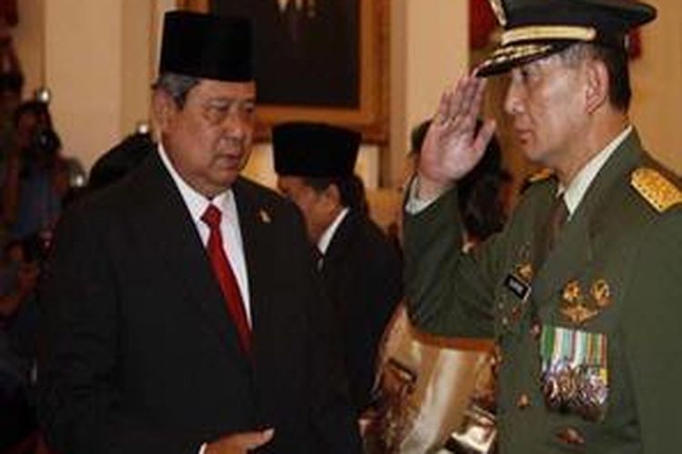 Presiden Susilo Bambang Yudhoyono, Rabu (6/1/2010) siang di Istana Negara, melantik Sekretaris Kabinet dan tiga orang Wakil Menteri. Presiden mengucapkan selamat kepada Letjen Sjafrie Sjamsoeddin yang dilantik sebagai Wakil Menhan. (RUMGAPRES/ABROR RIZKI)