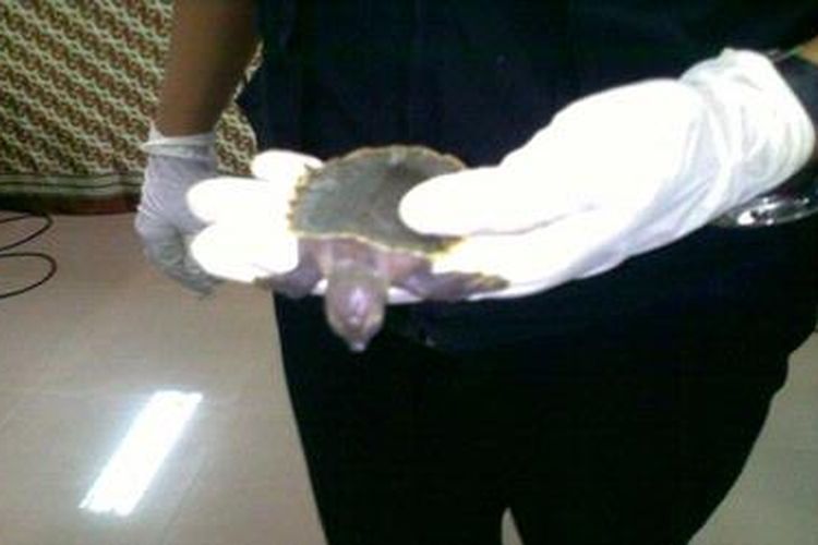 Kura-kura moncong babi gagal diselundupkan oleh Bea dan Cukai Bandara Soekarno-Hatta, dari Jakarta ke Hongkong, Selasa (2/2/2010).