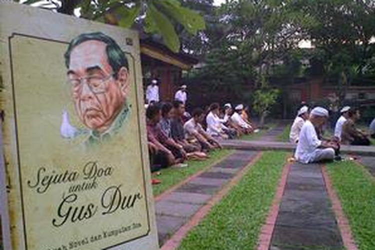 Umat Hindu melakukan ritual doa yang secara khusus dilakukan untuk mendiang Gus Dur, di Pura Adhitya Jaya, Rawamangun, Jakarta Timur, Senin (8/2/2010).