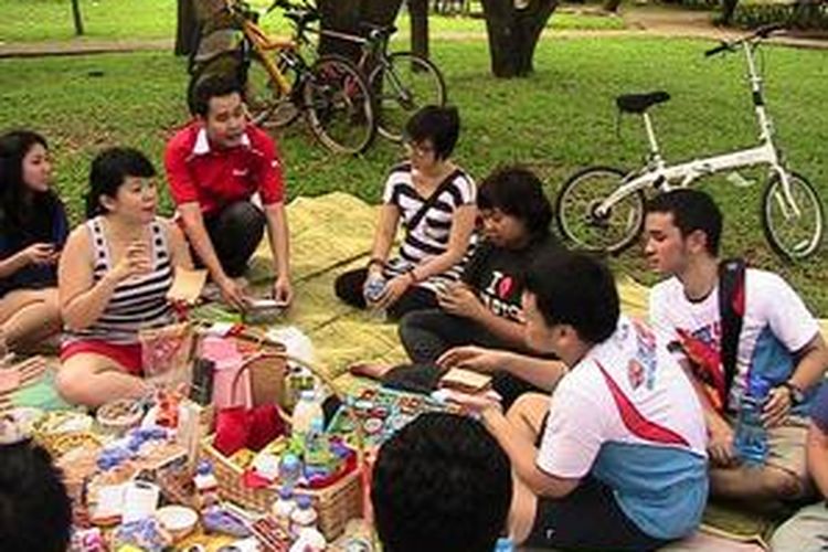 Nasta Inda (ketiga dari kanan) saat menggelar piknik sehat di Monas.
