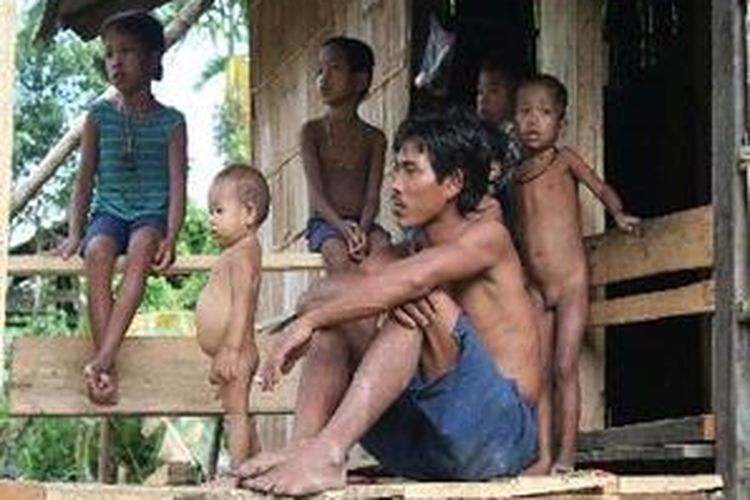 Seorang laki-laki warga Suku Talang Mamak di Dusun Tuo Datai bersama beberapa anaknya.