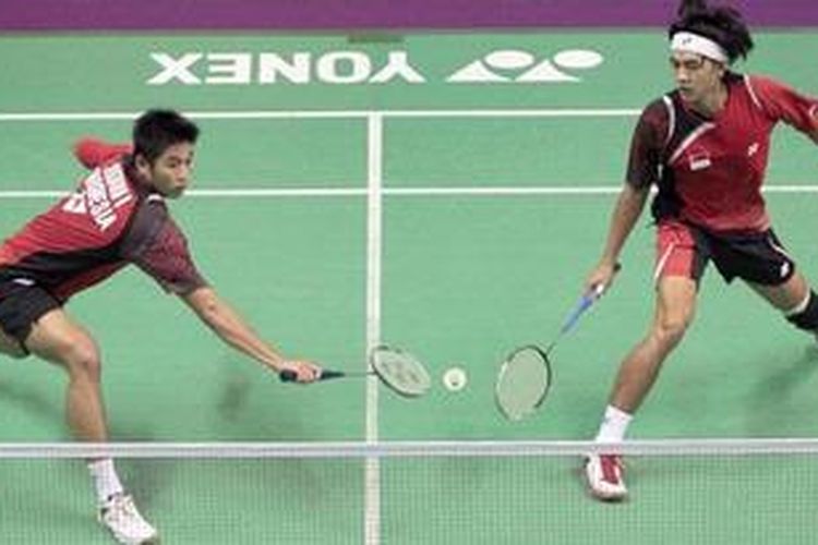 Ganda putra Indonesia, Yonathan Suryatama Dasuki (kanan) dan Rian Sukmawan.