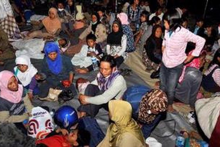 Puluhan warga Desa Kendalsari dan Sidorejo dievakuasi ke barak pengungsian Desa Keputran, Kecamatan Kemalang, Klaten, setelah Gunung Merapi kembali meletus, Rabu (3/11/2010). Puluhan warga yang sebelumnya masih tinggal di rumah terpaksa mengungsi karena dampak letusan kali ini mengarah ke kampung mereka. Akibatnya, jumlah pengungsi membludak.(KOMPAS/IWAN SETIYAWAN)