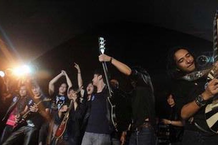 Penampilan sekitar 25 gitaris ikut meramaikan pentas amal bertajuk Dari Gitaris untuk Indonesia di Bentara Budaya Jakarta (BBJ), Jumat (5/11/2010) malam. Acara bertujuan untuk mengumpulkan dana bagi korban bencana erupsi Gunung Merapi di Yogyakarta dan Jawa Tengah, banjir bandang di Wasior, Papua Barat, dan Tsunami di Mentawai, Sumatra Barat.(KOMPAS IMAGES/DHONI SETIAWAN)