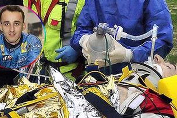 Rober Kubica saat mengalami kecelakaan siap diangkut dengan helikopter