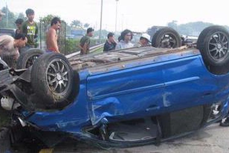Ilustrasi: Honda Jazz B-354-RP yang dikemudikan Nadra, warga Ciputat, Tangerang, terbalik di jalan tol BSD-Pondok Indah, Sabtu pukul 14.35. Nadra luka-luka