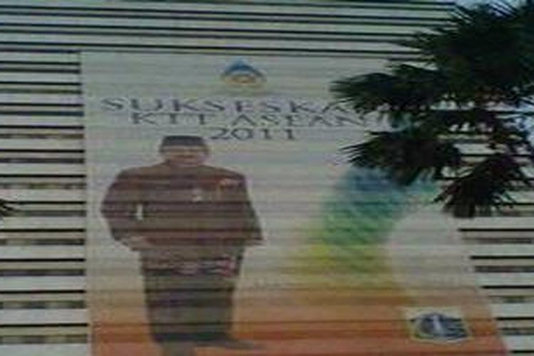 Baliho "raksasa" bergambar Gubernur DKI Jakarta Fauzi Bowo yang menempel di Gedung Pemprov DKI Jakarta.(Sabrina Asril)