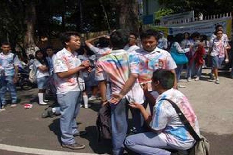 Ilustrasi: Sejumlah siswa SMAN 1 Semarang mencorat-coret pakaiannya untuk merayakan kelulusannya, di halaman sekolah itu, Senin (16/5/2011), meskipun ada larangan corat-coret.