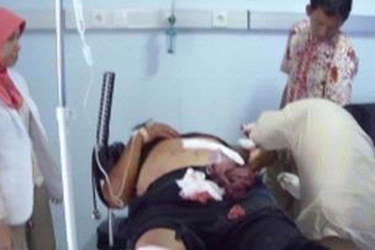 Bambang Sriyanto terkapar kritis di rumah sakit karena dibacok adiknya sendiri, Jumat (17/6/2011).