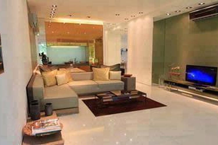 Dinding ruang tamu ini memiliki satu dinding dengan daya tarik tersendiri, yakni dinding berwarna hijau tua. Dinding ini menjadi berbeda karena yang lainnya berwarna putih.