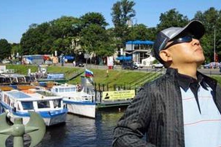 Penulis di pinggir anak Sungai Neva, St Petersburg, Rusia.