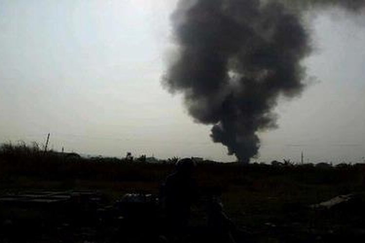 Dari kejauhan, asap dari api yang membakar Pasar Gedebage Bandung terlihat masih mengepul. Kebakaran terjadi sekitar pukul 0800, Jumat (16/9/2011).