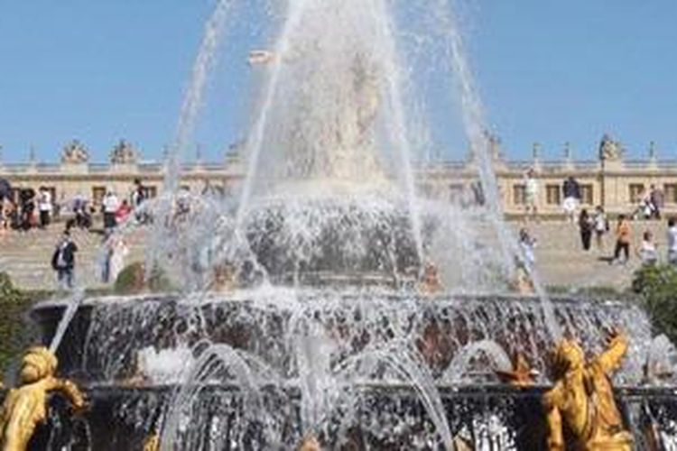Salah satu air mancur di taman Chateau de Versailles.