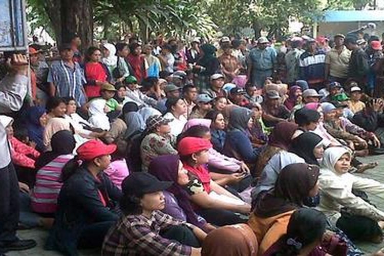 Ratusan warga korban lumpur Lapindo dari 45 RT Kabupaten Sidoarjo mendatangi kantor Badan Penanggulangan Lumpur Sidoarjo (BPLS) di Surabaya, Jawa Timur, Selasa (27/9/2011).