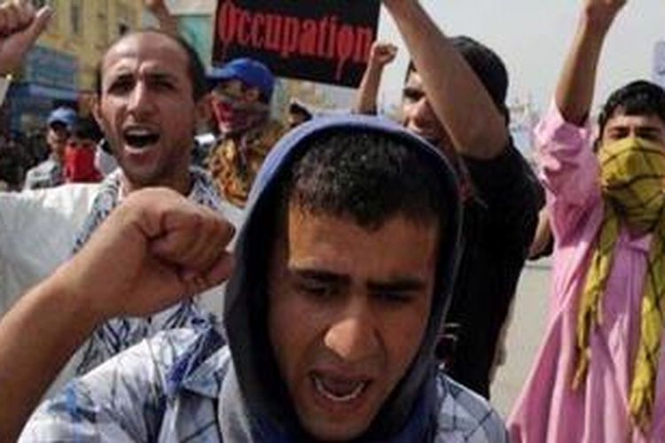 Demo antipasukan asing di Kabul, Afghanistan, Kamis (6/10/2011).