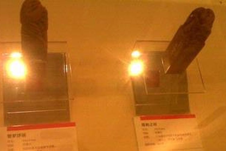 Stempel ukir bertulisan "Borobudur" (kiri)(Kompas.com/Valentine Widi Virdhani)