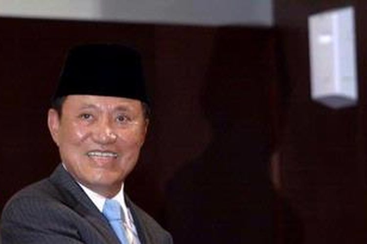 Mantan Menteri Hukum dan HAM, Patrialis Akbar (kanan) menyerahterimakan jabatan kepada Amir Syamsuddin di Gedung Kementerian Hukum dan HAM, Jakarta, Rabu (19/10/2011). Amir Sjamsuddin menjabat menteri Hukum dan HAM baru di susunan Kabinet Indonesia Bersatu II pasca-reshuffle. (KOMPAS IMAGES/KRISTIANTO PURNOMO )