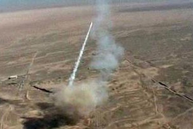 Peluncuran uji tembak sebuah rudal jarak pendek di Iran.