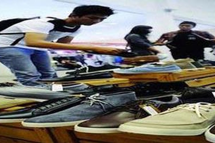 Pengunjung memilih sepatu yang ditawarkan di stan peserta Indie Clothing Expo di Gramedia Expo, Surabaya, Jawa Timur, Jumat (11/11/2011). Dengan standar dan kualitas yang tinggi, industri kreatif clothing yang melibatkan perajin berskala rumah tangga dalam pengerjaannya, produk itu turut memajukan produk-produk dalam negeri.(Kompas/Bahana Patria Gupta)