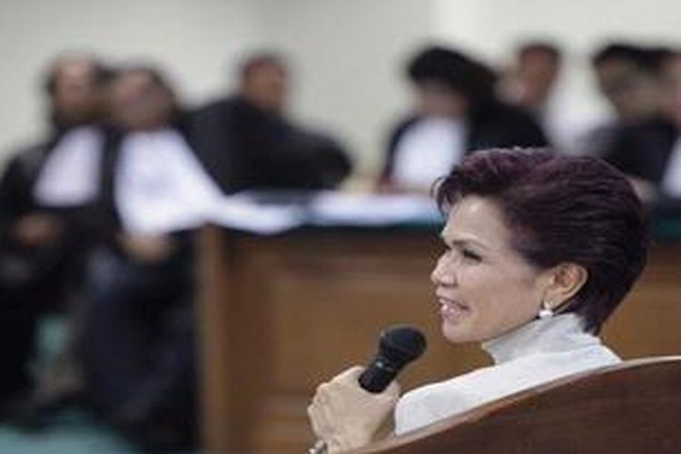 Mantan Deputi Gubernur Senior Bank Indonesia, Miranda S Goeltom, memberi kesaksian di Pengadilan Tindak Pidana Korupsi, Jakarta, Kamis (12/5/2011). Ia bersama Sekjen Partai Demokrasi Indonesia Perjuangan, Tjahjo Kumolo, dan Mantan anggota DPR Fraksi TNI/Polri, Udju Djuhaeri hadir memberi kesaksian kasus dugaan suap dalam pemilihan deputi gubernur senior Bank Indonesia yang melibatkan terdakwa Agus Condro, Max Moein, Poltak Sitorus, Rusman Lumban Toruan, Willem Max Tutuarima. (KOMPAS/LUCKY PRANSISKA)