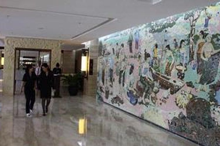 Mural keramik di Ambarrukmo Palace Hotel, Yogyakarta.