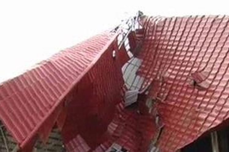 Gedung DPRD Mamasa yang baru beberapa tahun dipergunakan ambruk diterjang angin kencang, Rabu kemarin.