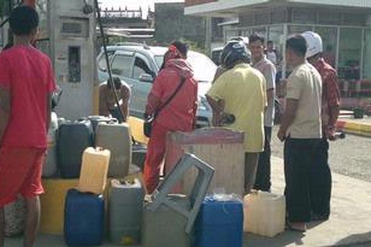 Jelang kenaikan harga, warga Bulukumba memborong BBM dengan menggunakan jeriken. (KOMPAS.com/RINI PUTRI)