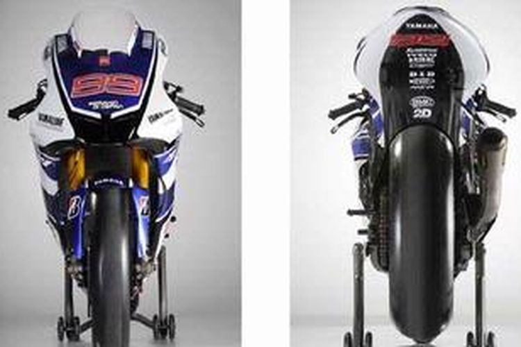Motor baru Yamaha YZR-M1 mesin 1.000 cc milik Jorge Lorenzo. Tampak depan (kiri), dan tampak belakang.(MOTORCYCLENEWS)