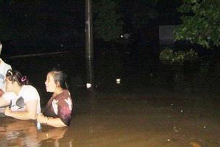 Hujan deras yang melanda Jakarta dan sekitarnya mengakibatkan banjir di perumahan Girya Sutera, Alam Sutera, Serpong Utara, Kota Tangerang Selatan, Selasa (3/4/2012) malam.