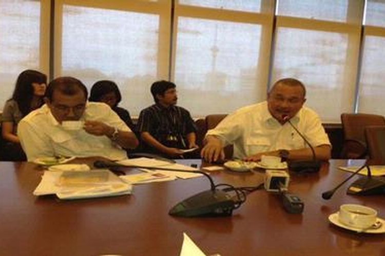 Bakal calon gubernur DKI Jakarta Alex Noerdin (kanan) dan pasangannya Nono Sampono (kiri), Senin (2/4/2012) sore, bertandang ke kantor Redaksi Harian Kompas.