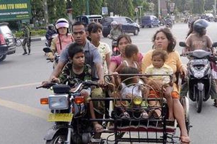 Susana kepanikan warga saat gempa berkekuatan 8,5 SR mengguncang kawasan Kota Banda Aceh, Rabu (11/4/2012).