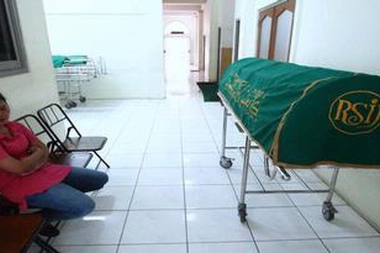 Trianawati kerabat dari almarhum Anggi yang merupakan korban tewas dalam peristiwa penyerangan oleh geng motor di Kawasan Salemba, Jakarta Pusat, menunggu jenasah keponakannya di Kamar Jenazah Rumah Sakit Islam Jakarta, Jakarta Pusat, Jumat (13/4/2012).(KOMPAS/WISNU WIDIANTORO)